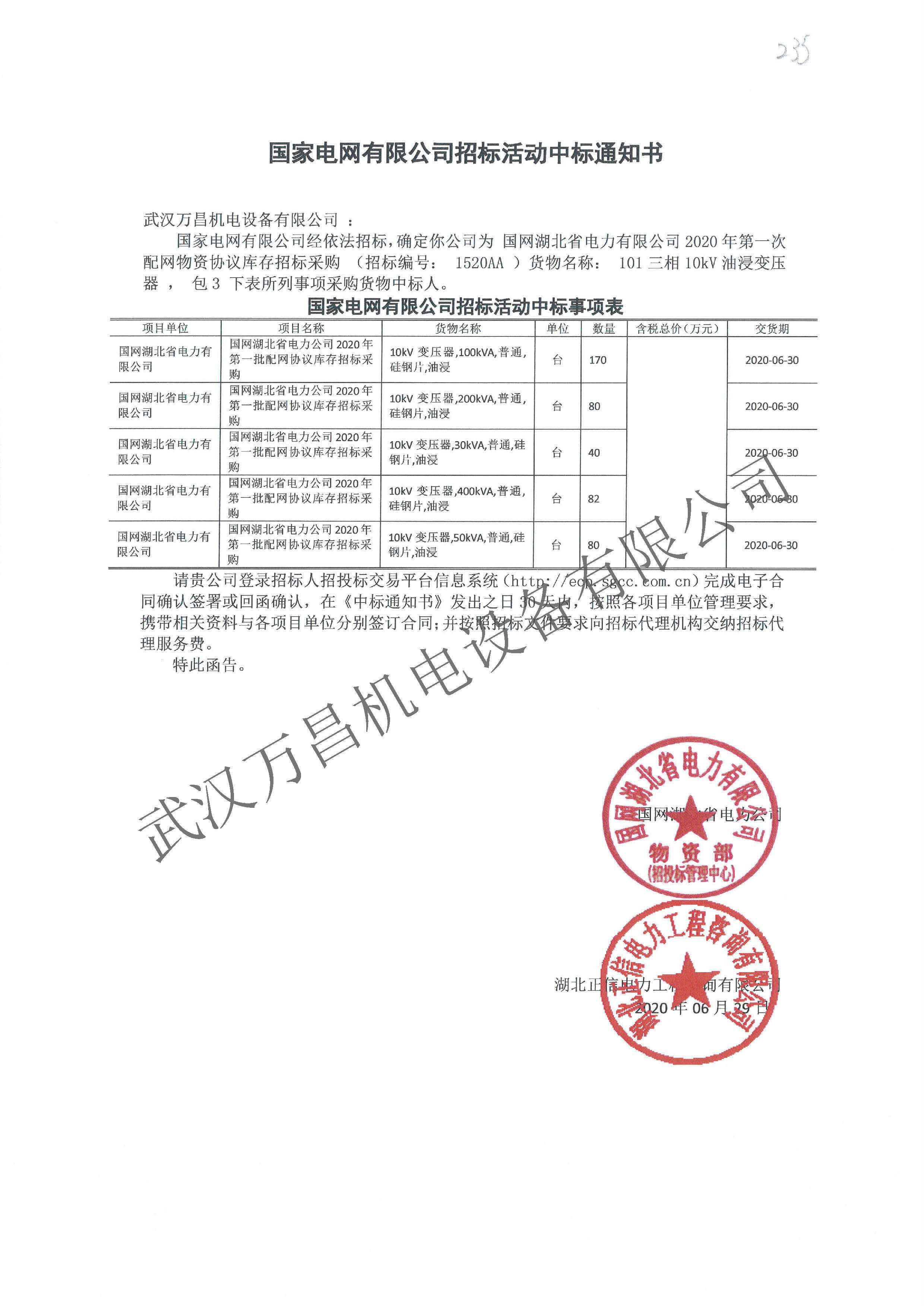 2020年中標(biāo)國網(wǎng)湖北省協(xié)議庫存項(xiàng)目